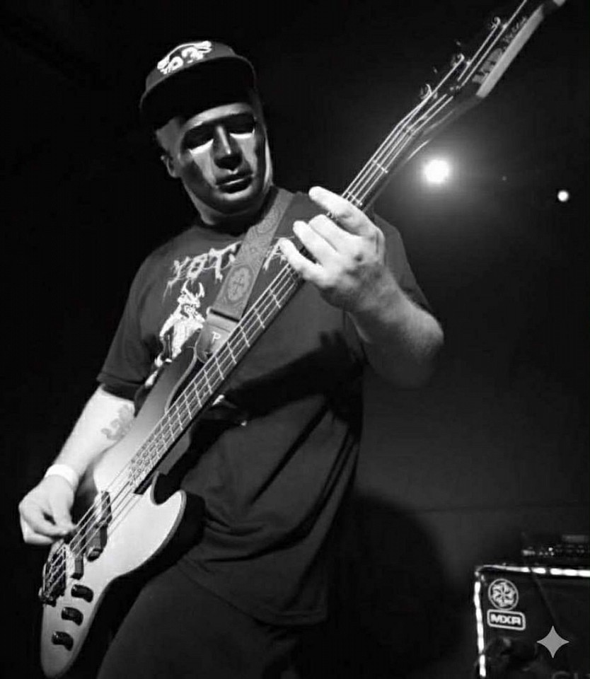 Each rhythm he crafts is a war dance, each fill a prayer. From powwow echoes to double-kick fury, Jose bridges ancient cadence with modern chaos, grounding GHIDORA’s sound in both legacy and defiance. On stage, he’s a force—painted in spirit, drumming in truth, shaking the earth with every strike.